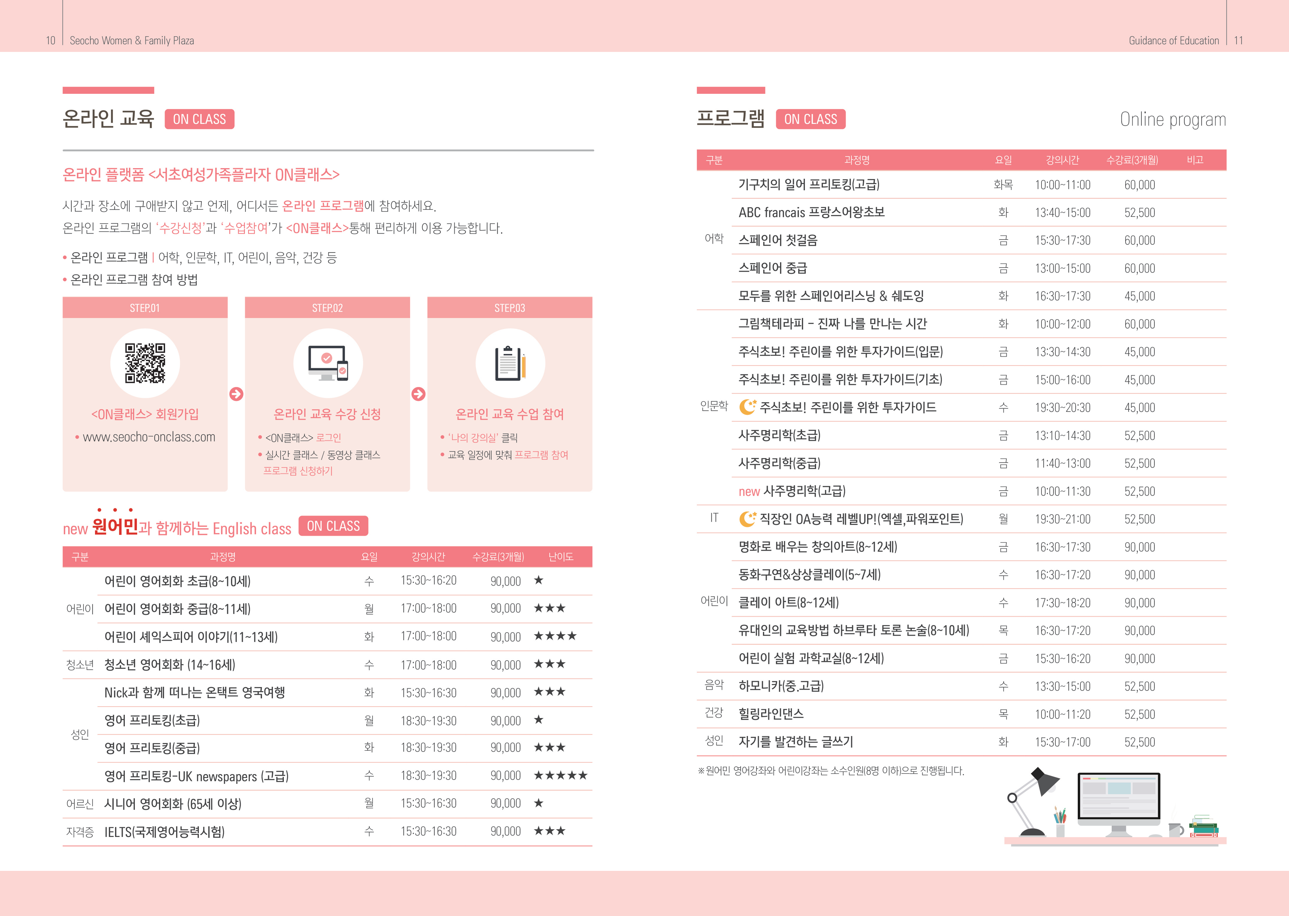 접수방법 : <ON 클래스> 회원가입 - 수강 희망 프로그램 클릭 - 수강신청/결제