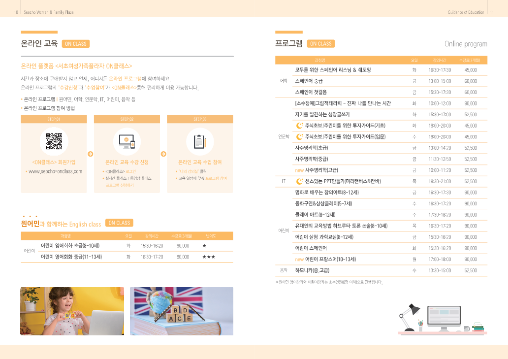 접수방법 : <ON 클래스> 회원가입 - 수강 희망 프로그램 클릭 - 수강신청/결제